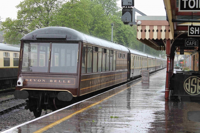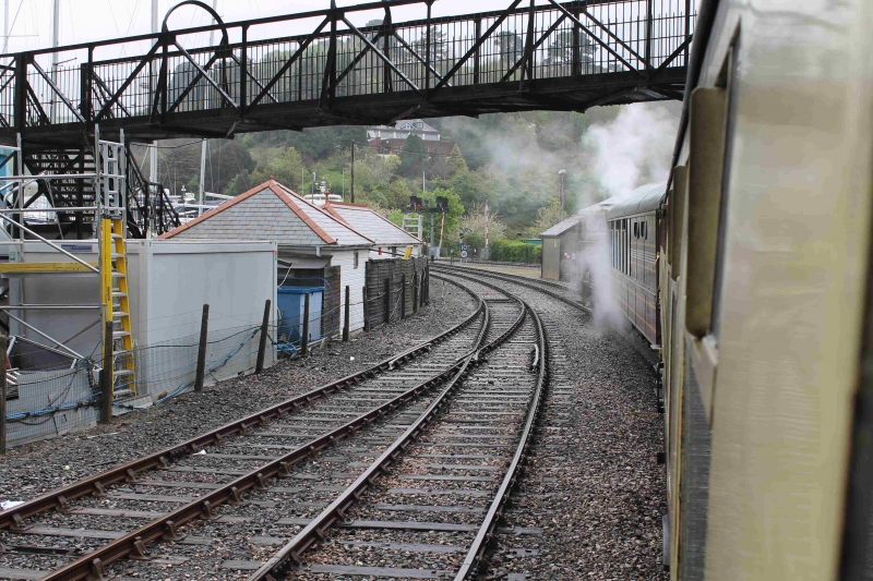 Dartmouth Railway 27th April 2018 Pannier Tank in LT colours at Paignton Devon Belle Observation coach in the rain Car Ferry Tour Boat Tour Boat House in Dartmouth Old house in Dartmouth Hotel in Dartmouth Ship moored in Rive Dart Dartmouth Harbour Dartmouth Harbour Passenger Ferry Passenger Ferry moored at Kingswear Kingswear Dartmouth Castle Signal box at Kingswear Pannier Tank at Kingswear Set of coaches stabled at Kingswear Kingswear Platform Kingswear Station Dartmouth Naval College Departing Kingswear Yachts moored on the River Dart Churston Station Hotel at Churston Goodrington Sands, but no one on the beach! Steam Engine Braveheart at Paignton American engine at Paignton