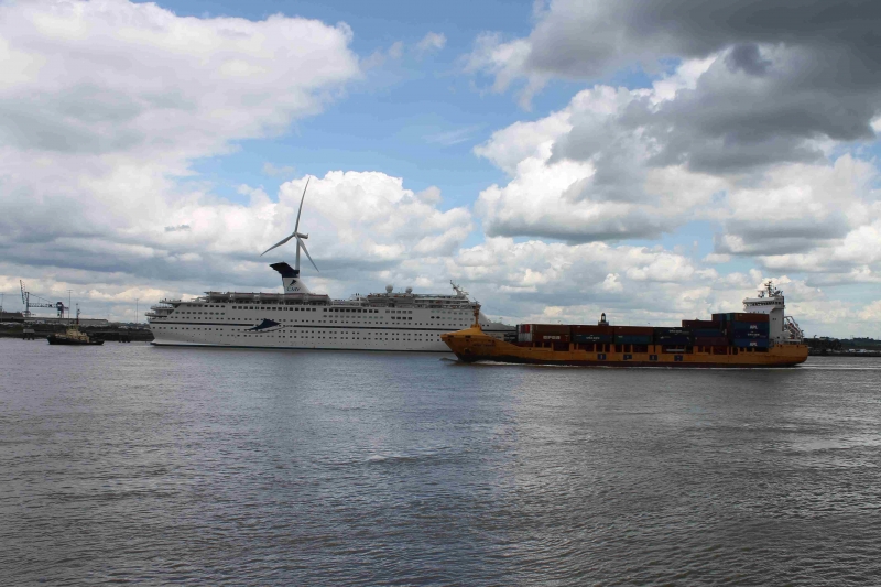 Images of activity on the River Thames on 20th May 2017 as the cruise ship MS Magellan docks at Tilbury.